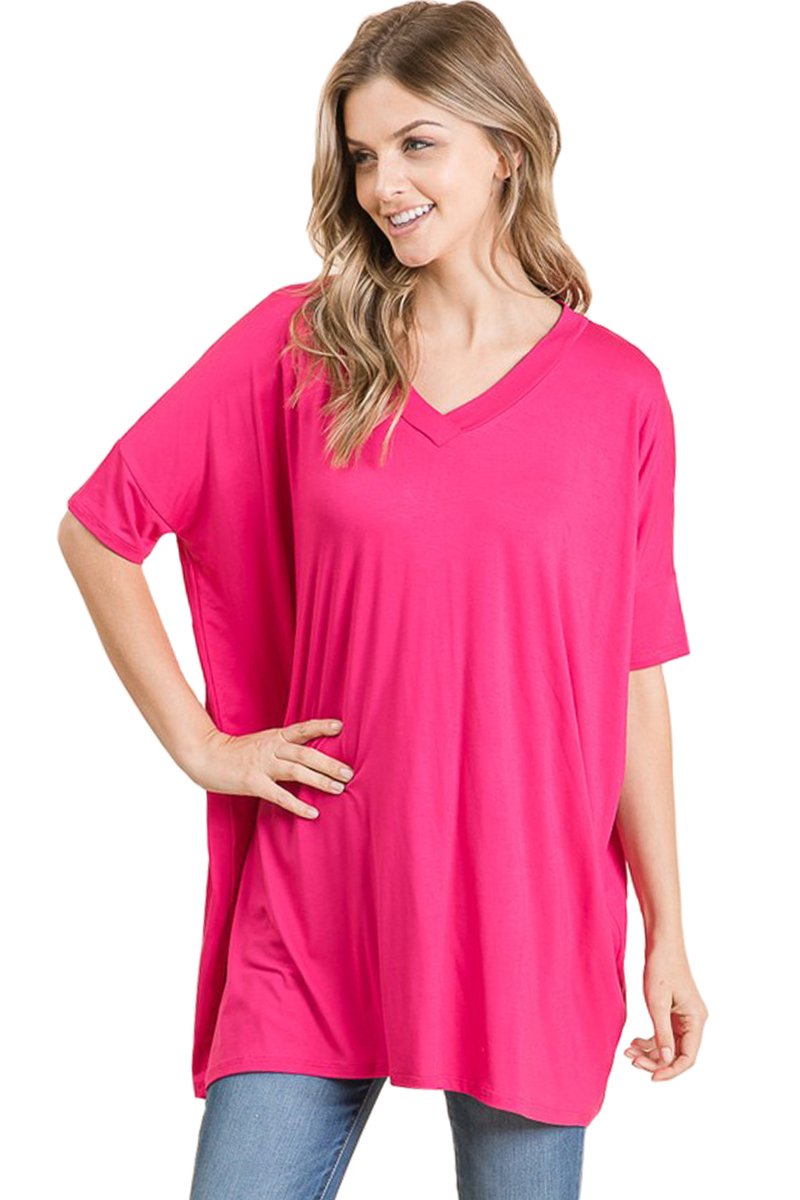 Update your everyday wardrobe with the Loose Fit V-Neck Tunic from Iconic Luxe. Crafted from soft and stretchy fabric with a delightful drape, this pullover top features a V-neckline and half sleeves for a sweet feminine look. Pair it with skinny jeans and sneakers for a comfy-casual outfit, or dress it up with a denim skirt and booties.