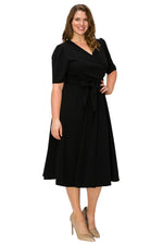 Wrap Midi Dress with Puff Shoulder Plus Size