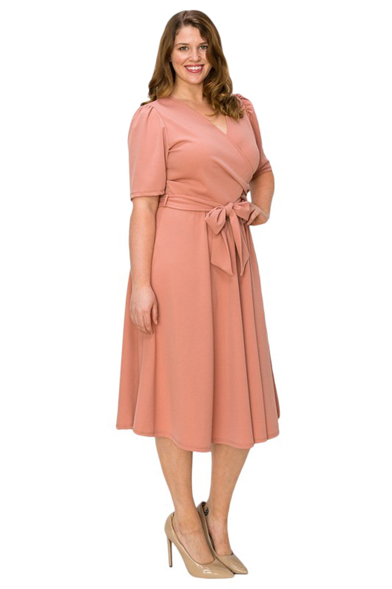 Create an outfit that lets you take on any occasion in chic style with this Wrap Midi Dress with Puff Shoulder Plus Size from Pastel by Vivienne. This stunning wrap midi dress is designed with a focus on comfort, style, and accentuating your curves. The standout feature of this dress is the puff shoulders, which add a touch of drama and femininity to the overall look. Pair it with high heels and a clutch for an elegant look that suits a variety of special events.